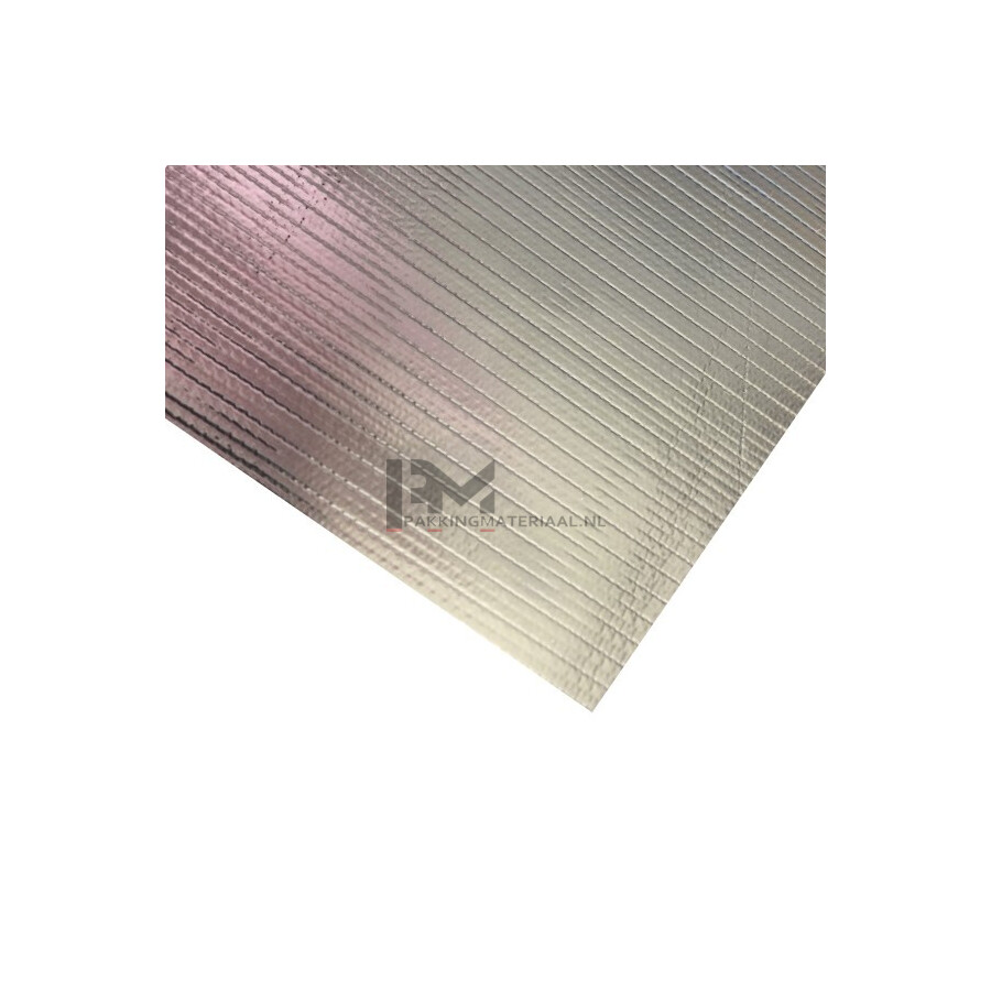 Hitzeschild aus Glasfasern vom Typ 'E' (9-µm-Fasern) mit einem Aluminiumblech auf der einen Seite und einer Klebstoffseite mit hoher Klebrigkeit und Wärmebeständigkeit auf der anderen Seite (HT bezieht sich auf die Qualität des Klebstoffs)
