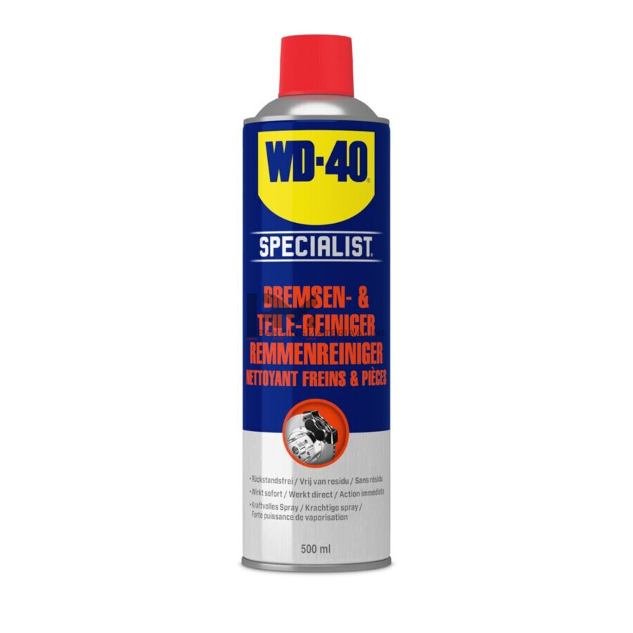 WD-40 SPECIALIST Brake Cleaner removes grease, oil, dirt, and deposits from brakes, clutches, gears, and other components. The formula acts instantly, dries quickly without leaving residues, and is applicable on most surfaces.